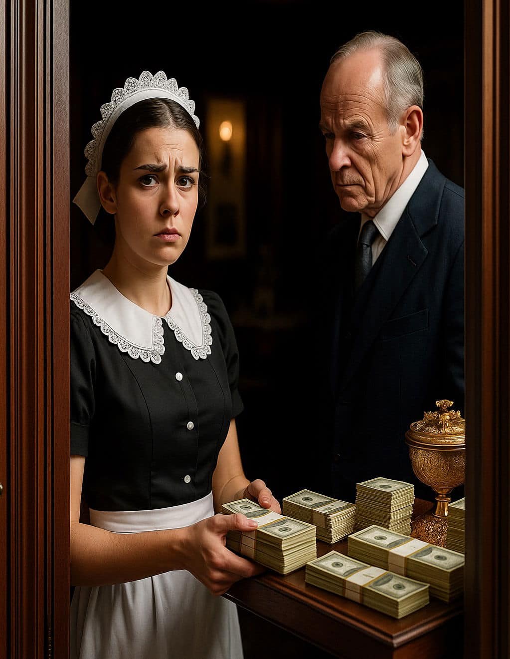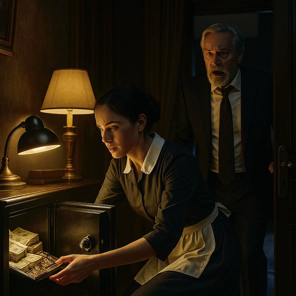 Par une journée particulièrement pluvieuse, l’homme d’affaires décida de confronter ses suspicions à la réalité. Dans son cabinet de travail, il laissa intentionnellement son coffre-fort grand ouvert, exhibant clairement des bijoux de valeur et d’importantes sommes d’argent sous l’éclairage direct. Il se dissimula ensuite, guettant l’arrivée de sa salariée.
