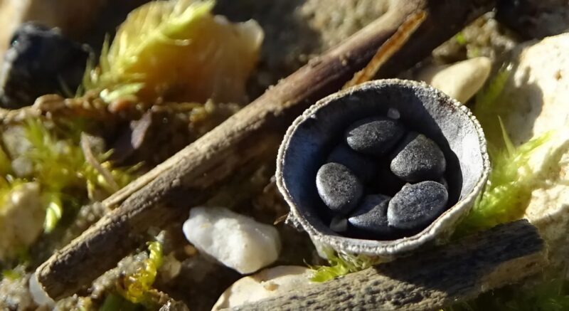 Et c’est là que le génie naturel opère : lors des averses, chaque goutte qui percute le petit nid propulse les capsules alentour, garantissant la dissémination des spores. Un mécanisme d’une ingéniosité et d’une élégance à couper le souffle !