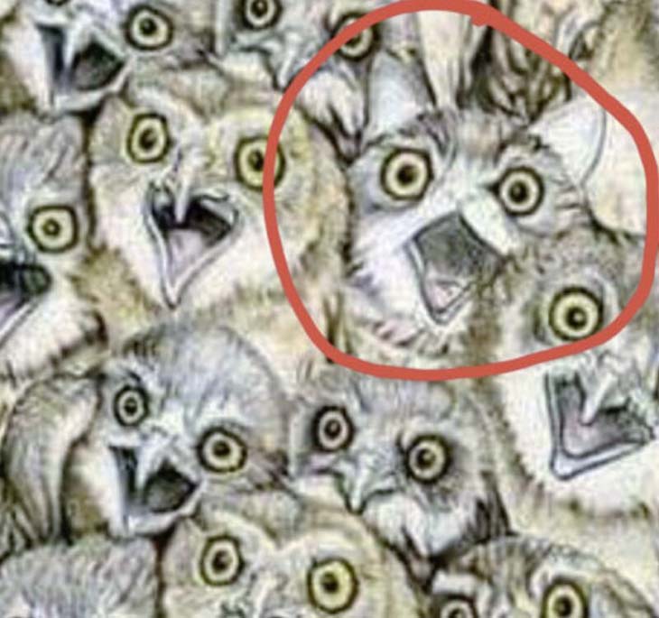 Prêt(e) pour un petit défi visuel qui mettra vos sens à l’épreuve ? Sur cette image, apparemment remplie de chouettes, se cache un intrus malicieux : un chat malin qui a su se fondre dans la volée. À vous de jouer : où s’est-il caché ?