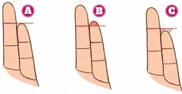 Pour l’essayer, c’est d’une simplicité enfantine : observez votre main et comparez la longueur de votre petit doigt à l’extrémité de la dernière phalange de votre annulaire. Trois possibilités… et trois portraits pleins de nuances.