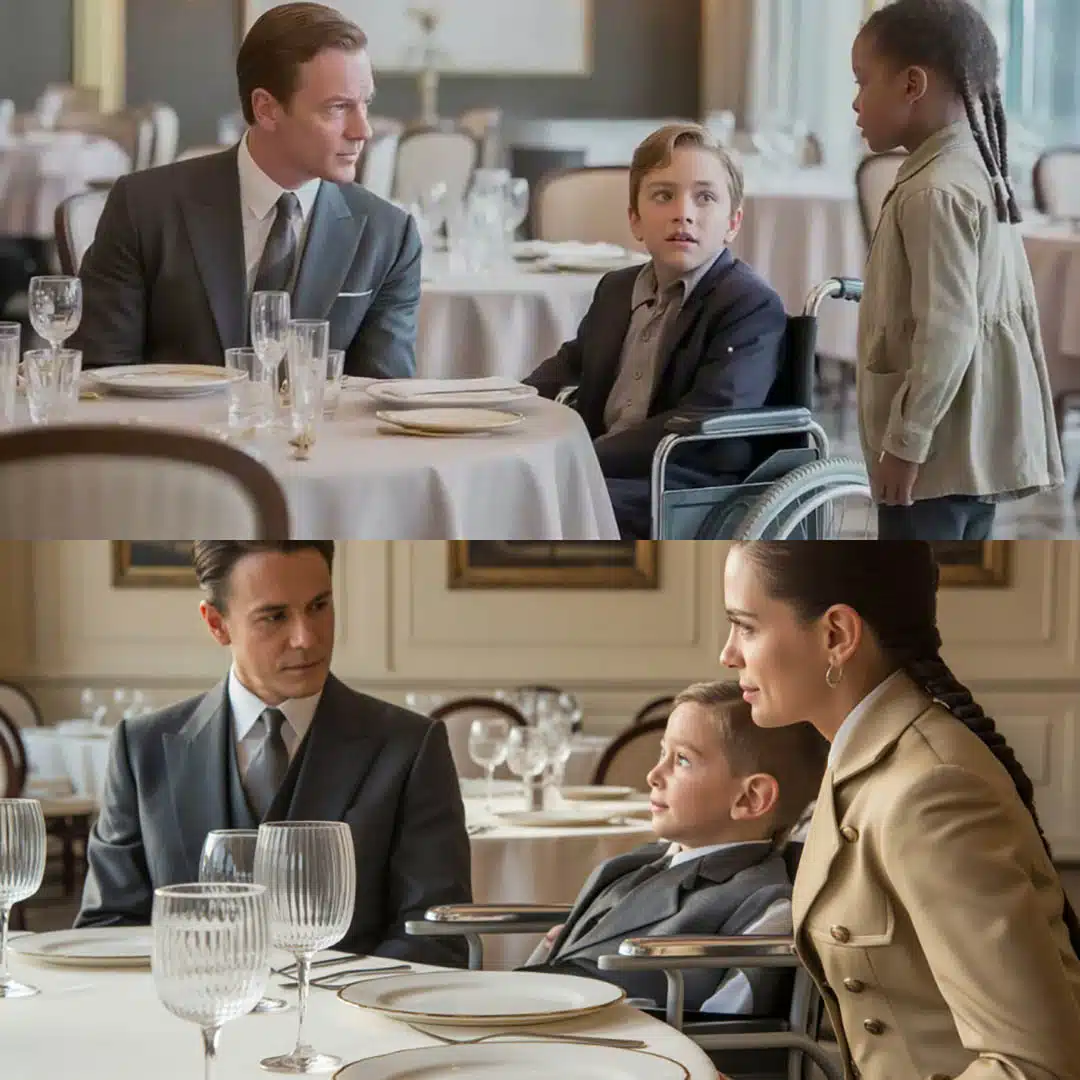 Soudain, une fillette aux vêtements simples s’approcha de leur table. Elle avait l’air épuisée, mais son regard était calme et déterminé.