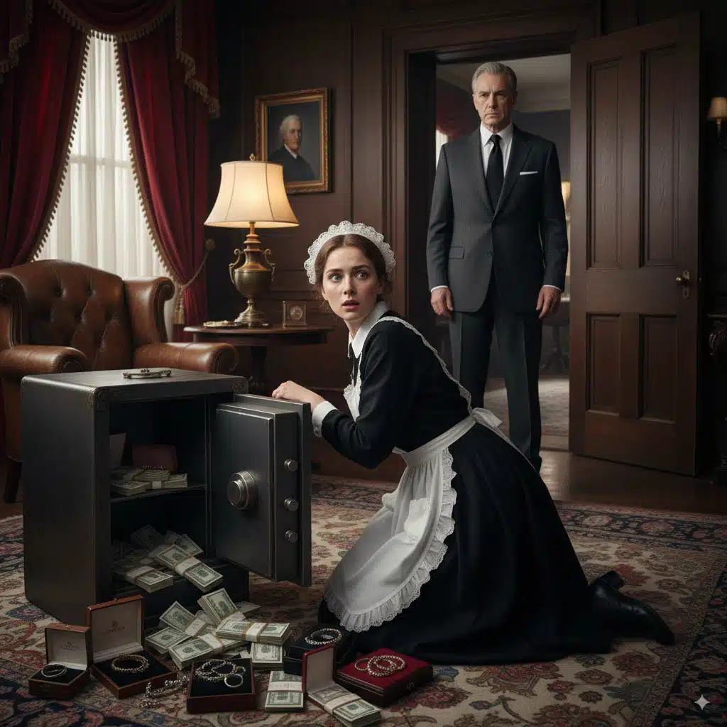 Par une journée particulièrement pluvieuse, l’homme d’affaires décida de confronter ses suspicions à la réalité. Dans son cabinet de travail, il laissa intentionnellement son coffre-fort grand ouvert, exhibant clairement des bijoux de valeur et d’importantes sommes d’argent sous l’éclairage direct. Il se dissimula ensuite, guettant l’arrivée de sa salariée.