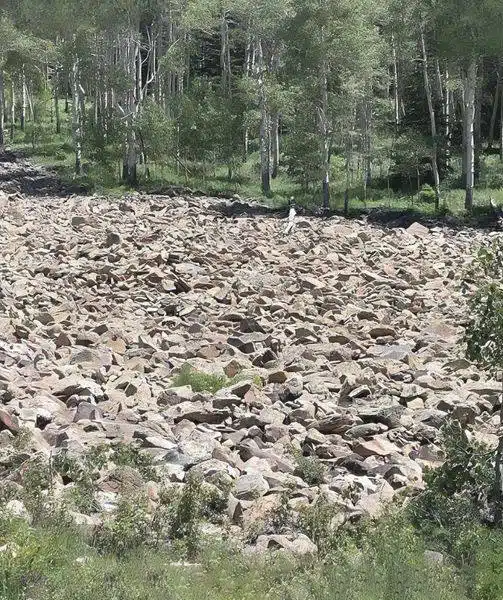 La femme est bel et bien là, faisant partie intégrante du paysage. Avec un camouflage d’une précision remarquable, elle se niche au cœur de l’image, au milieu des fragments de roche.