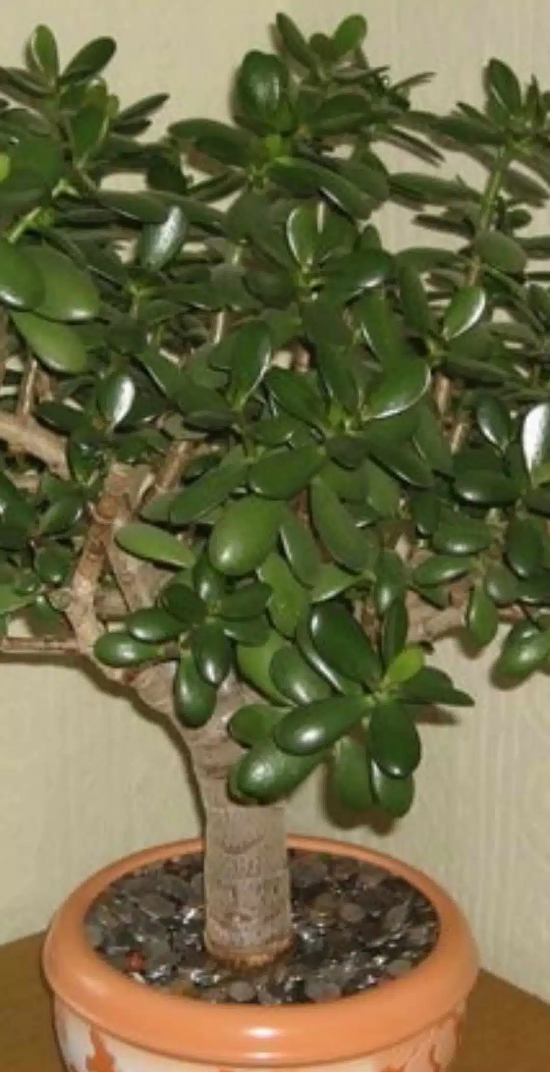 Derrière ce nom évocateur se trouve une plante d’intérieur très populaire : la Crassula arborescente, souvent surnommée plante de jade. Avec son tronc robuste qui se ramifie et ses feuilles rondes, épaisses et légèrement lustrées, elle ressemble à un arbre miniature. Cette silhouette lui confère une présence apaisante et structurante, comme un véritable symbole de pérennité dans votre espace de vie.