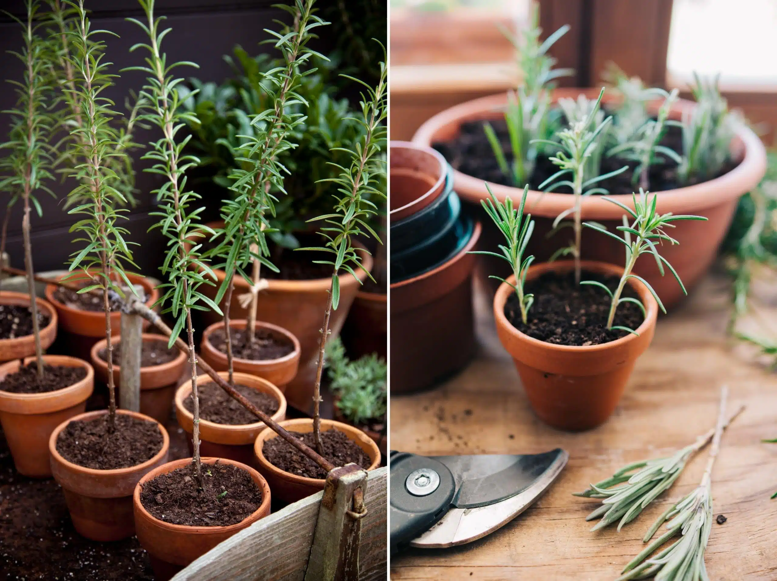 Le bouturage est un moyen simple de créer de nouveaux plants : prélevez une tige jeune, retirez les feuilles du bas, plantez-la dans un pot rempli de sable humide et laissez-la s’enraciner. En quelques semaines, vous pourrez replanter ce jeune romarin et profiter d’une plante vigoureuse, idéale pour parfumer la cuisine et le balcon.
