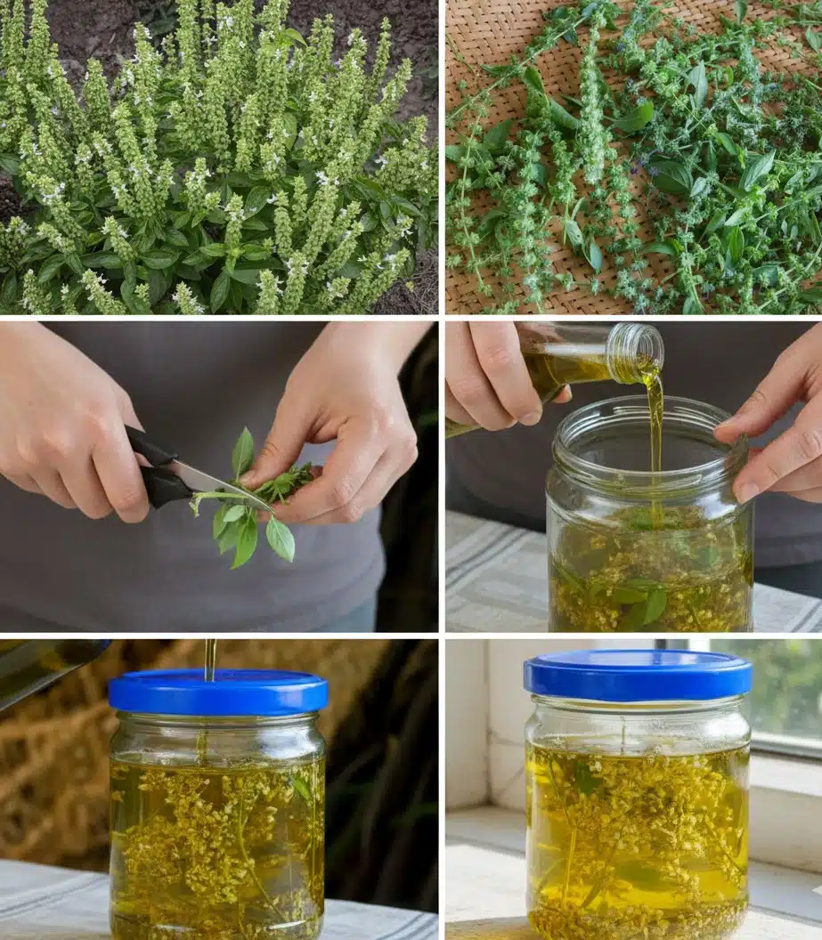 Les fleurs séchées de basilic permettent de confectionner un vinaigre subtilement parfumé, idéal pour agrémenter vos salades de saison ou préparer des marinades savoureuses.