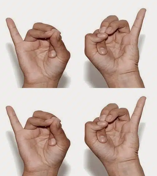 - Avec chaque main : pliez l’index de façon à ce qu’il touche la base du pouce.