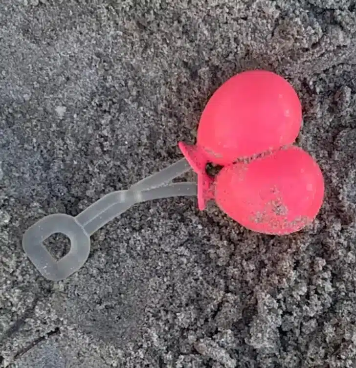 Ce petit élément rouge et translucide, à la texture souple, semblait bien mystérieux. En réalité, il s’agit d’un accessoire pour figurines LEGO : deux ballons miniatures que tiennent les personnages. L’univers des briques célèbres recèle parfois des détails insoupçonnés.