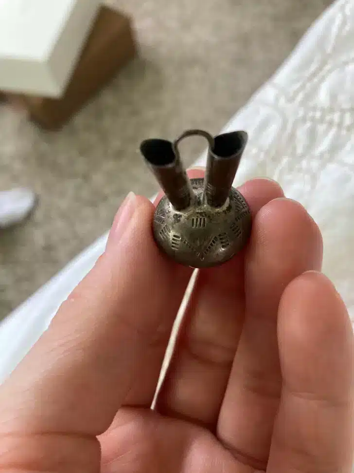 Ce bel objet en argent, finement ciselé, avait été offert pour célébrer une union. Après enquête, il s’est avéré qu’il s’agissait d’un vase cérémoniel amérindien. Une pièce chargée de traditions, même si sa signification échappait complètement aux heureux élus.
